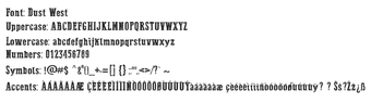 Dust West é uma fonte inspirada no Velho Oeste, projetada para trazer um toque rústico e nostálgico a projetos de design. Com suas formas de letra altas e condensadas, a fonte apresenta bordas desgastadas e detalhes que imitam a impressão em tinta, evocando a atmosfera de saloons e sinalizações de fronteira. As variações vão de contornos sólidos a acabamentos mais ásperos, oferecendo estilos versáteis que são perfeitos para logotipos impactantes, cartazes e embalagens que precisam se destacar.